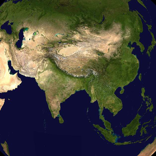 Clima: Debido a su tamaño y a sus morfología Asia tiene muchos tipos de clima. Hay zonas, como la zona de Siberia y de la meseta tibetana, que se caracterizan por un clima con escasas precipitaciones, largos y rigurosos inviernos y veranos cortos. Muy árido, con inviernos fríos y veranos cálidos es el clima de la mayoría de las regiones del interior del continente, como los desiertos de Gobi y el Taklimakan. Asia de Suroeste de las llanuras del río Indio a las orillas del Mar Mediterráneo tiene un clima típico de la estepa semiárida con baja precipitación y altas temperaturas. Gran parte de las regiones del sur del continente, incluyendo el sur de China y la India se ven afectados por un clima monzónico con inviernos frescos y secos y los veranos cálidos y húmedos, con importantes precipitaciones en los meses de verano. Por último a lo largo del ecuador, hay un clima cálido y húmedo, con lluvias repartidas a lo largo del año.